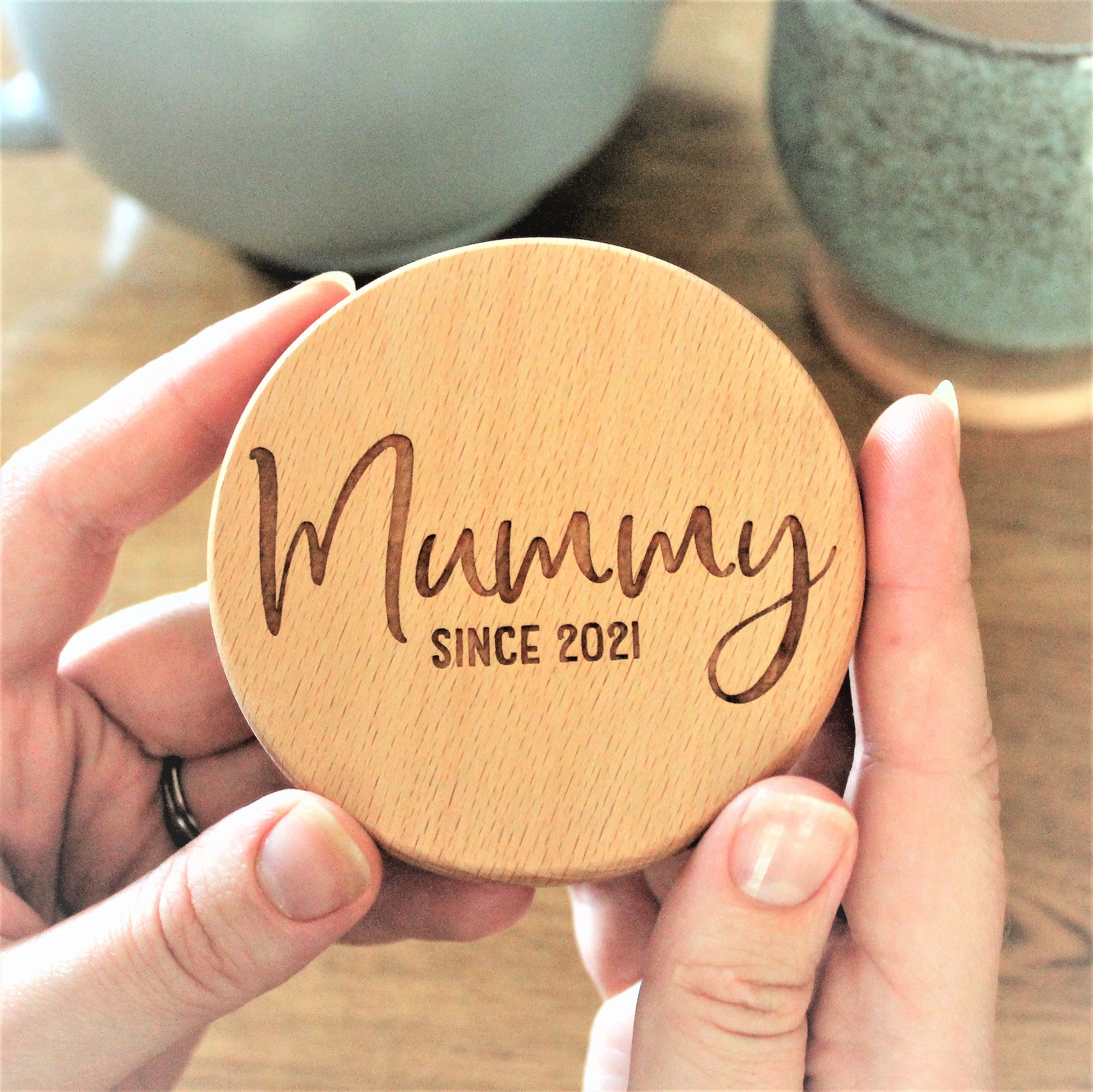 The coaster can be personalised with Mum, Mummy, etc...., and the year they became a Mum. You can add a special message on the back too!