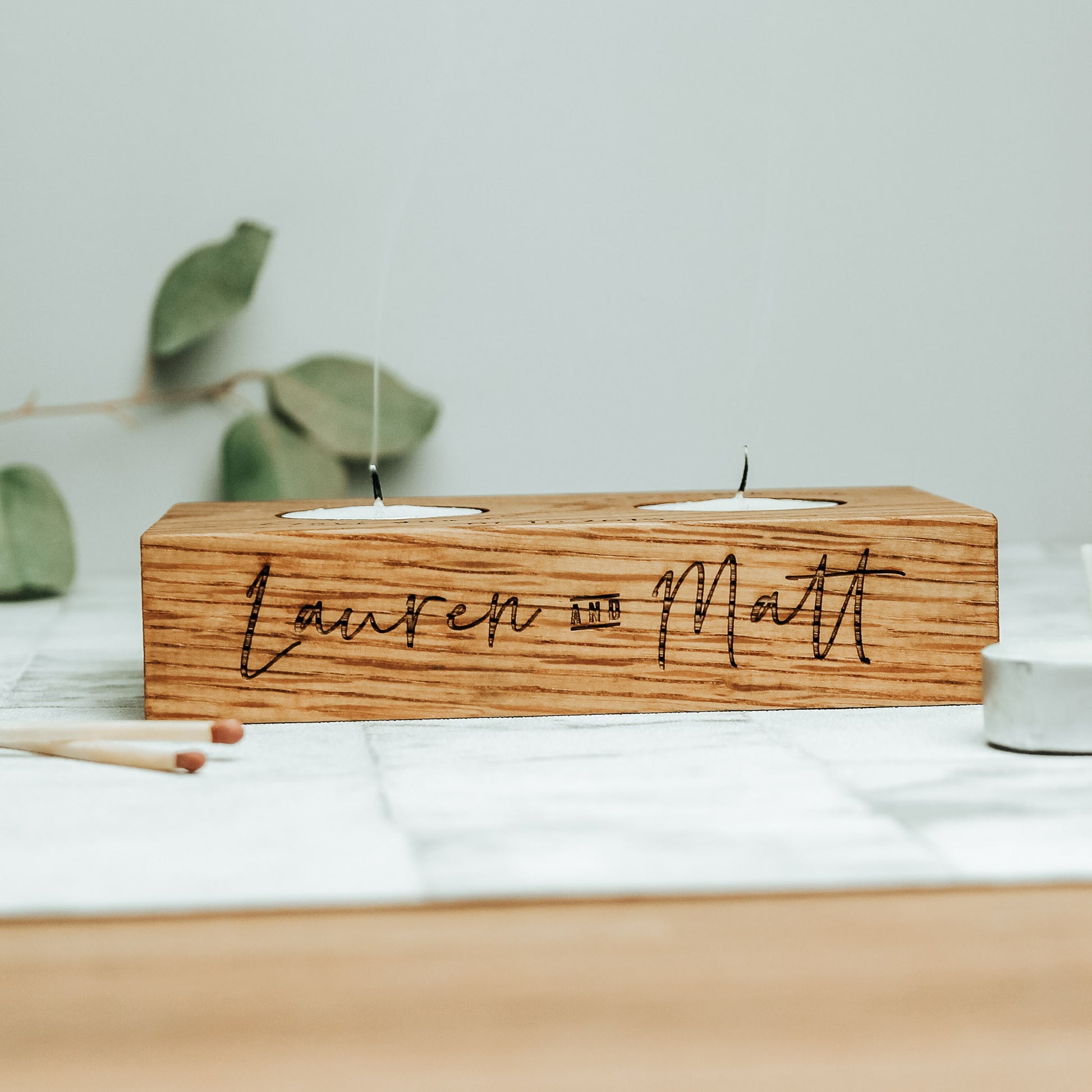 Personalised Solid Oak Candle Tealight Holder