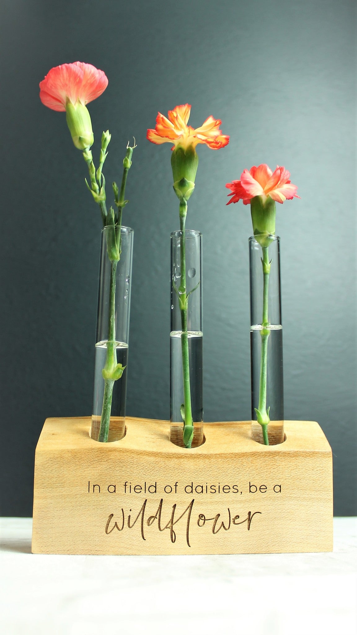 Our little wooden vase display looks striking on window sills, shelves or desks, use them as personal table settings for a special event or as a special gift.